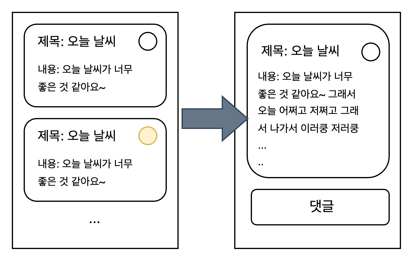 목록에 대한 id만을 넘기고 상세 페이지에서 id에 대해 다시 데이터 조회를 할 수 있지만,