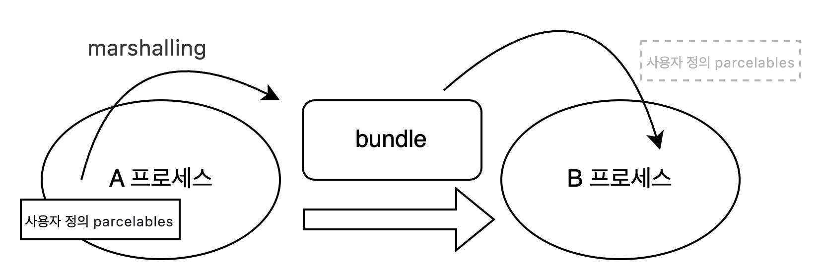 사용자 정의 클래스를 앱에 정의해 놓았어도 parcelable을 시스템에 전송하려고 하면 오류가 발생할 수 있다.
