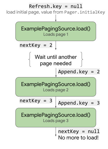 첫 Page를 가져올 때 nextKey에 다음 Page position을 알려주어 다음 load() 호출의 key를 지정해 준다.