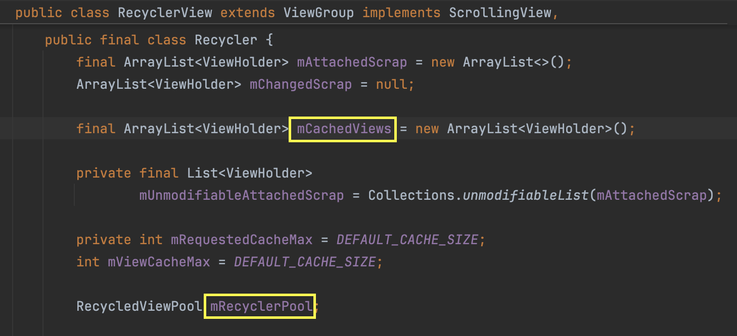 RecyclerView는 View의 재활용을 효율적으로 사용하기 위해 Cache와 Recycled Pool을 사용하는데,