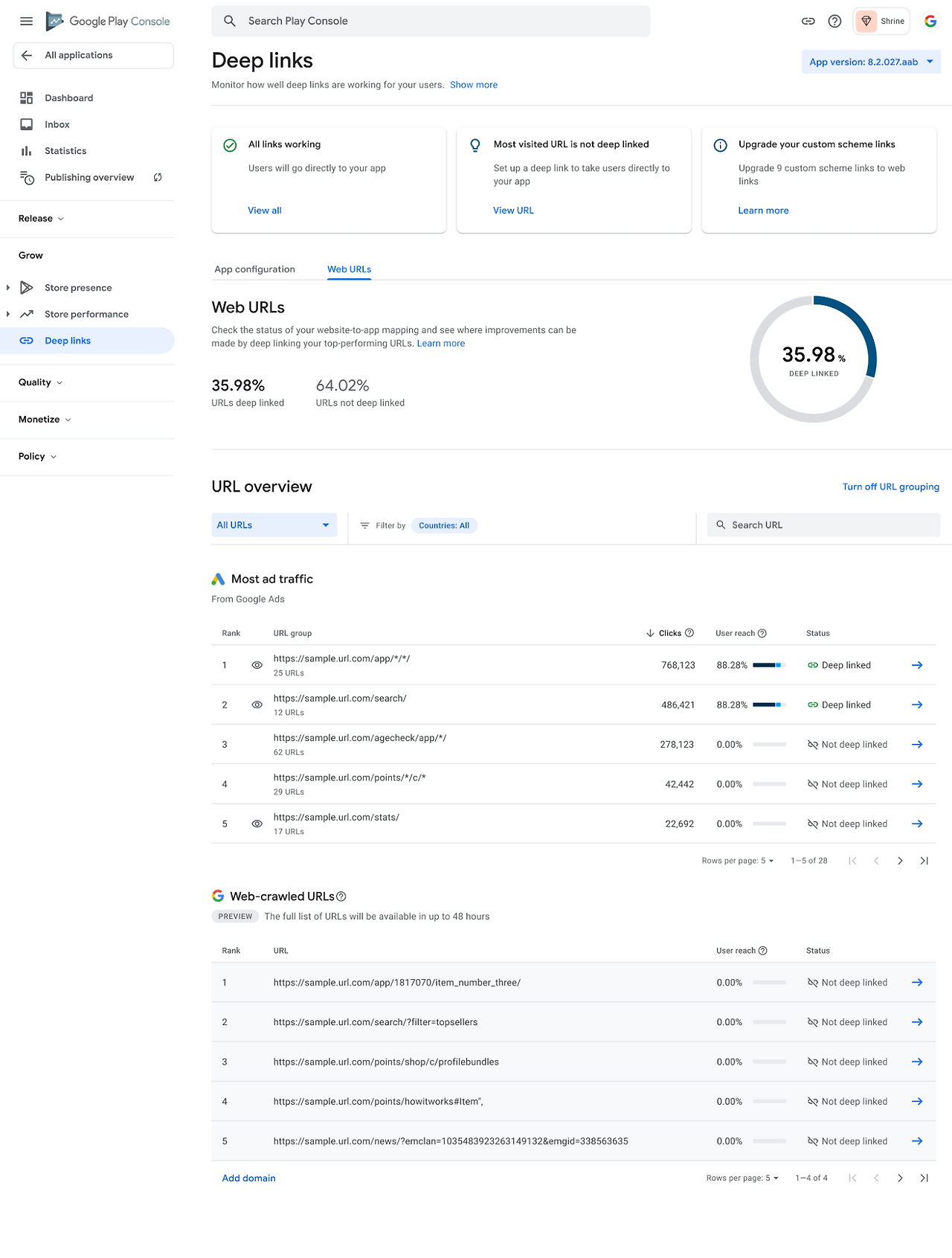 앱을 출시하고 나면 Google Console에서 App Link를 만들고 확인할 수도 있다.